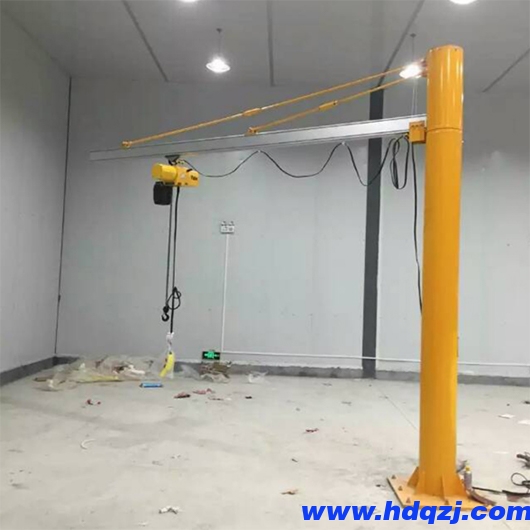 懸臂式起重機是為適應現代生產需要而研制的新一代輕量化起重設備,其與高可靠性的環鏈電動葫蘆特別適合于短距離、頻繁、密集的吊運作業,具有效能高、節能、省事、占地面積小、易操作和維護等特點。